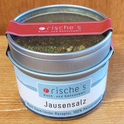 rische's „Jausensalz“ bringt mehr Würze und frischen Wind in Ihre Küche. Genießen Sie unsere Vorstellung einer vielseitig einsetzbaren Gewürzzubereitung. All unsere Gewürzmischungen basieren auf unseren eigenen Sauerländer Rezepturen, erprobt in der rische's Testküche und für uns hergestellt in echter Manufakturqualität. Das bedeutet für Sie: