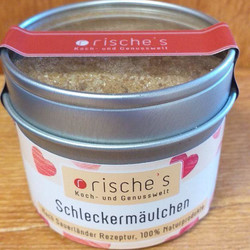 Vielfältiges Süßspeisen-Gewürz nach Sauerländer Rezeptur. Mit rische's „Schleckermäulchen“ verfeinern Sie Desserts, Cremes, Quark, Joghurt, Kuchen, Milchreis, Müsli und Kompott oder Sie geben es zum Süßen in Kaffeegetränke.